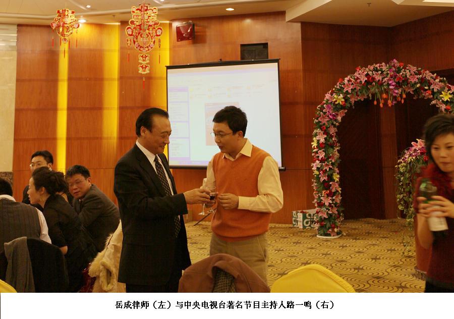 2010年2月3日,岳成律师应邀出席中央电视台《今日说法》栏目虎年新春联谊酒会。