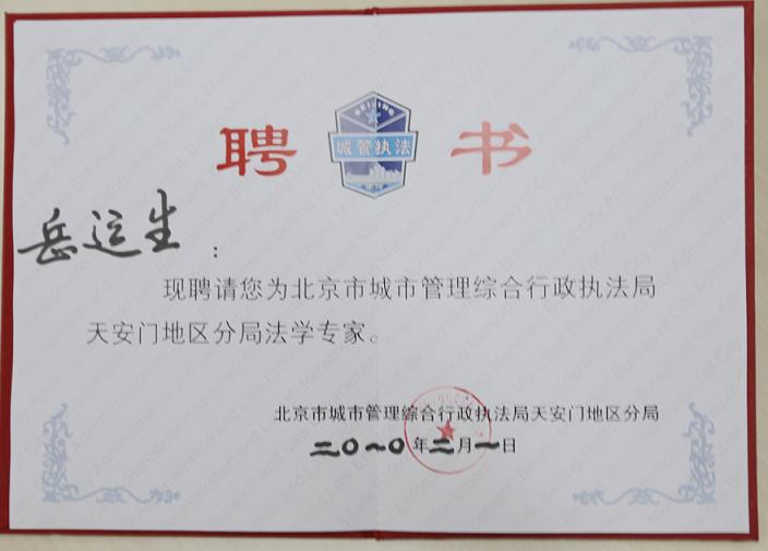 岳运生主任受聘担任北京城管执法局"法学专家"