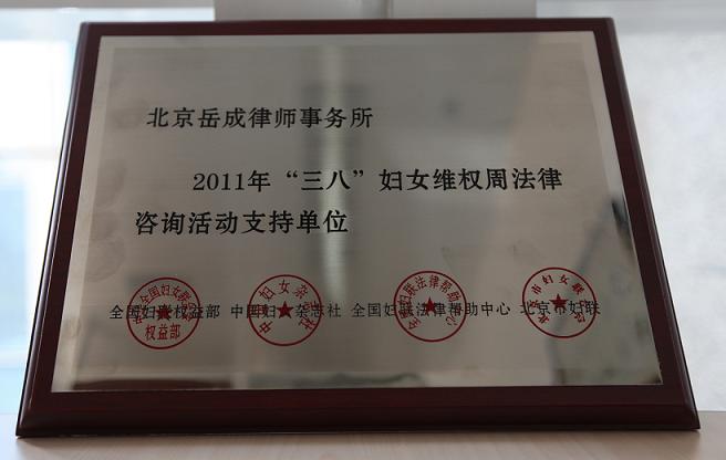 2011年3月,我所荣获“2011年‘三八’妇女维权周法律咨询活动支持单位”。