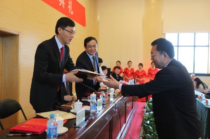 2011年9月30日,岳屾山律师出席中国社会科学院研究生院法学系开学典礼并颁发岳成奖学金、奖教金。图为岳屾山律师(左)为奖教金获奖者颁奖。