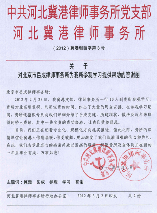 河北冀港律师事务所主任带领该所律师来我所参观交流