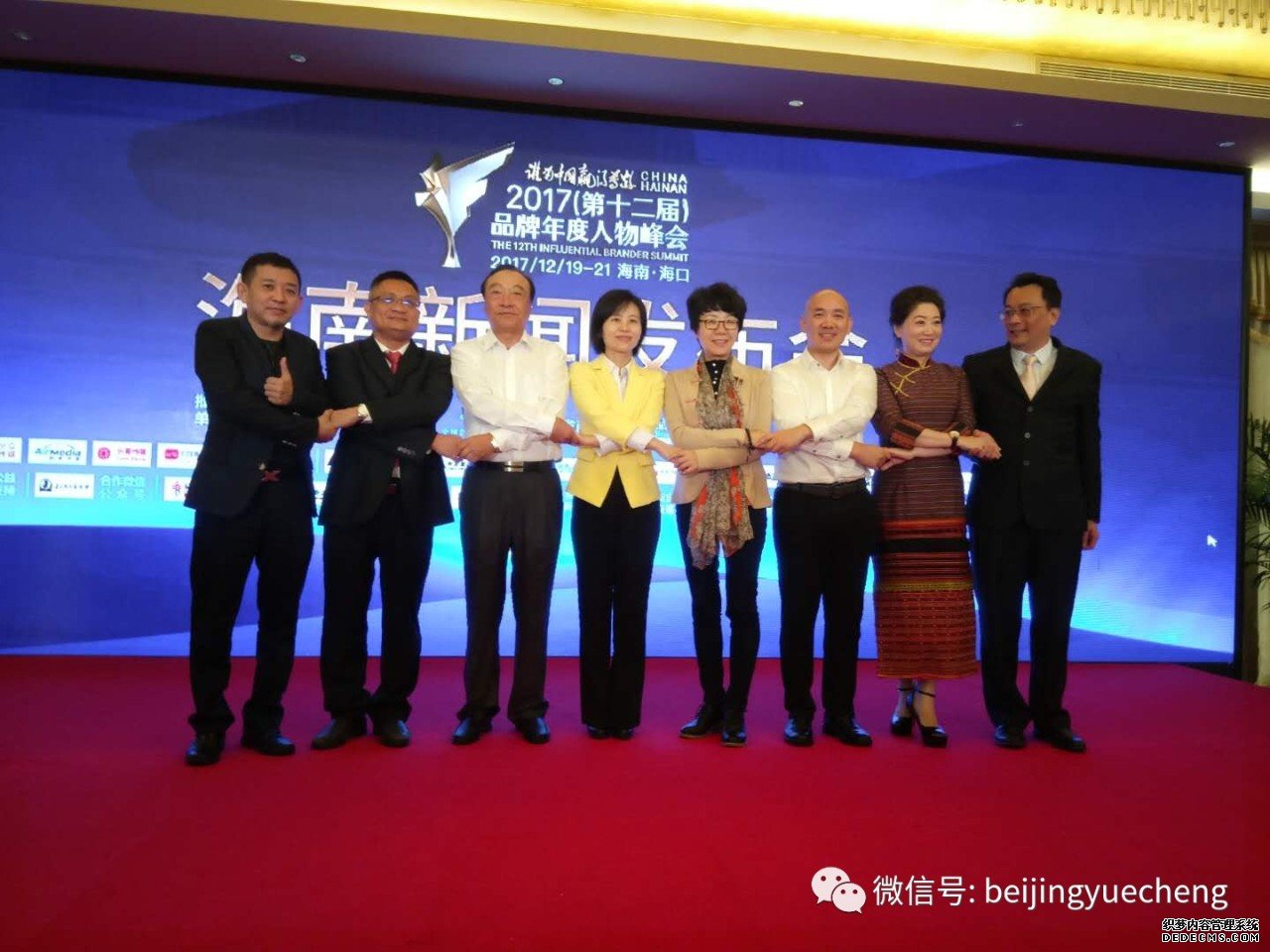 2017年12月5日,岳成律师(上图左三)参加2017(第十二届)品牌人物年度峰会海南新闻发布会。