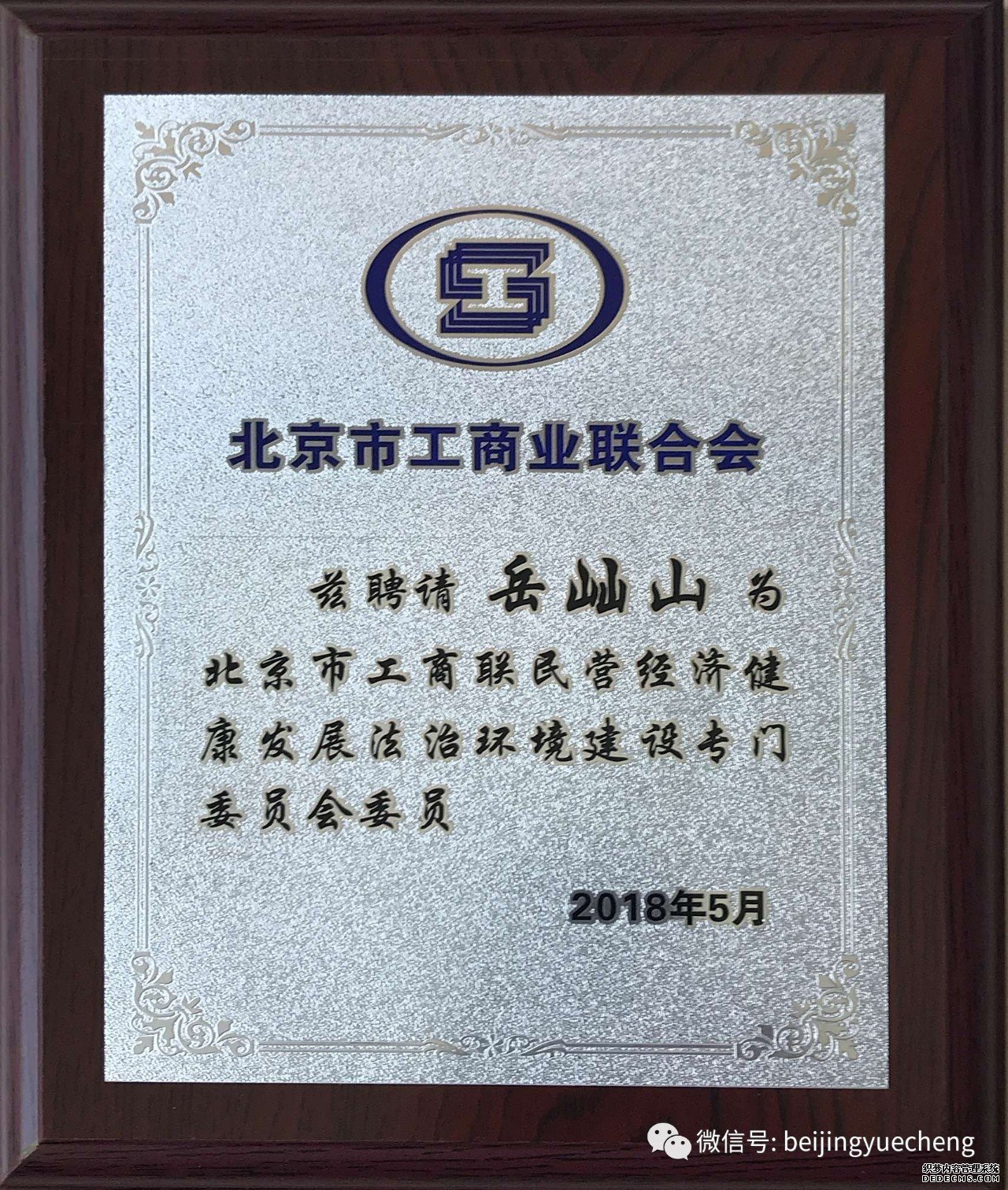 2018年5月,北京岳成律师事务所高级合伙人岳屾山律师受聘担任北京工商联民营经济健康发展法治环境建设专门委员会委员。