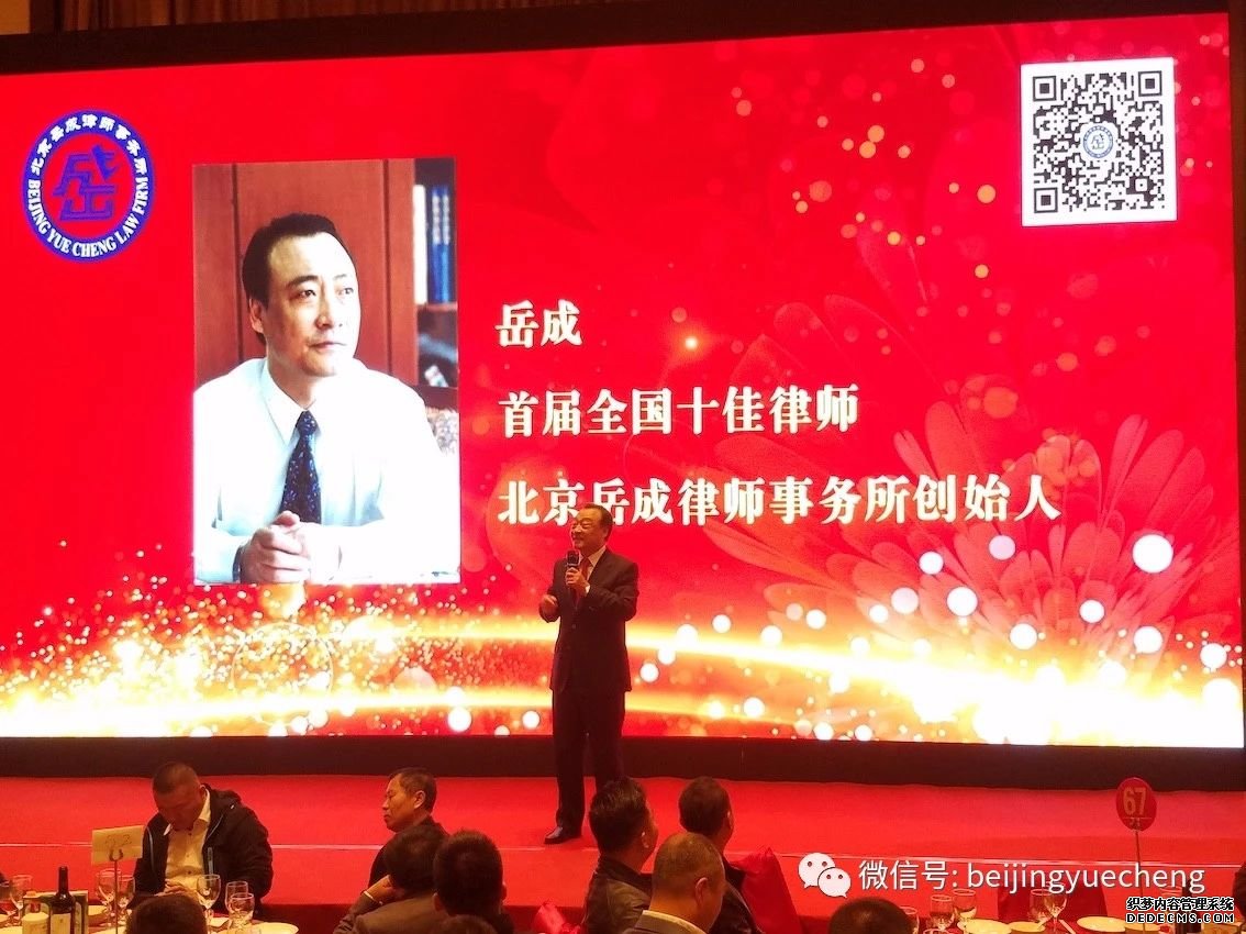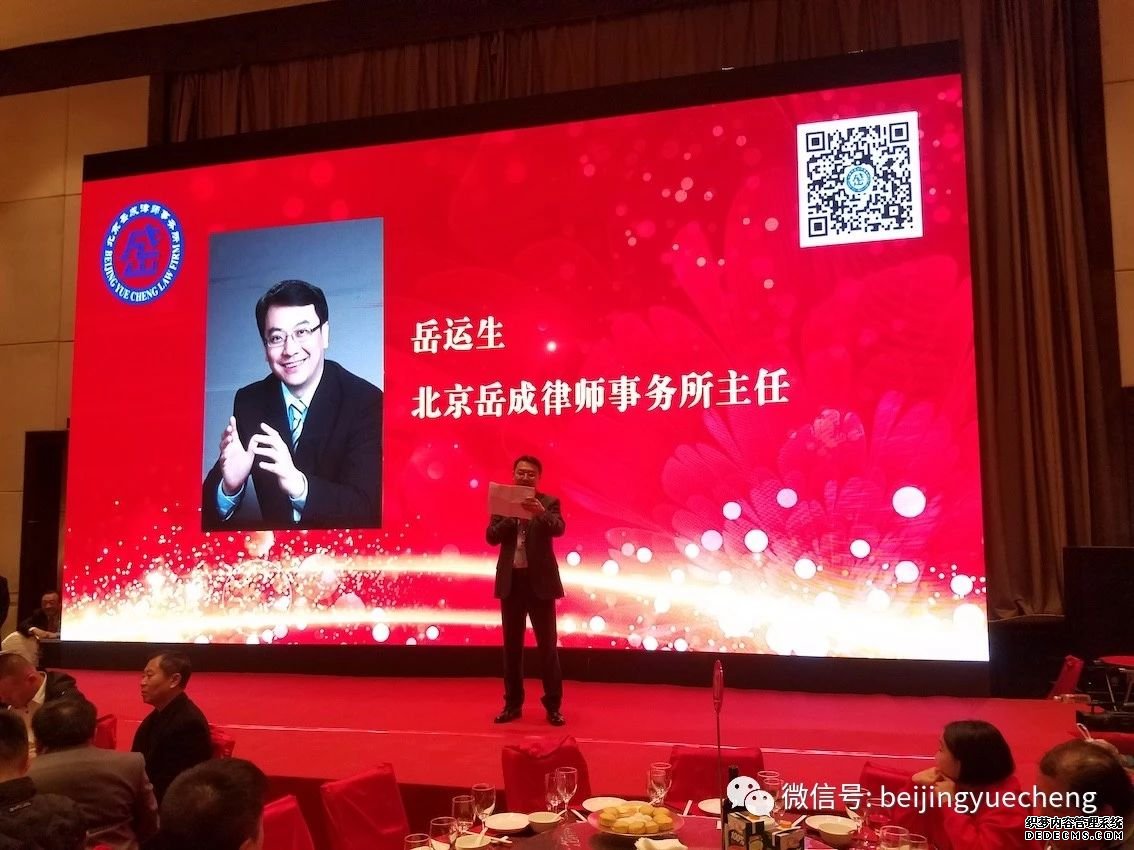 酒会由岳屾山律师主持,岳运生主任介绍桌长,首届全国十佳律师、北京岳成律师事务所创始人岳成律师致辞。