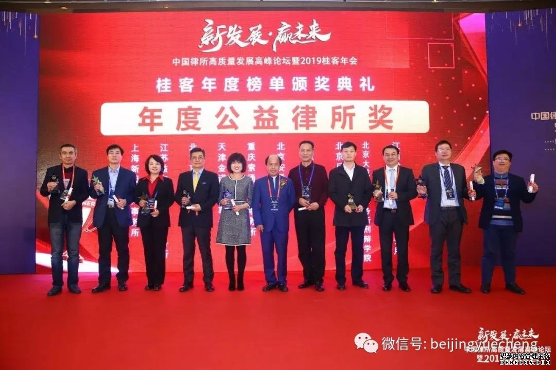 2019年1月11日,中国律所高质量发展高峰论坛暨2019桂客年会在北京长富宫酒店隆重召开。会议颁发了2019桂客榜单,北京岳成律师事务所荣获年度公益律所奖。岳运生主任作为特邀嘉宾出席活动,并在演讲中分享了岳成所的发展历程、模式探索以及面临的挑战。