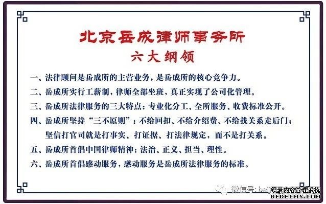 正所谓国有国法,家有家规,像岳成所这样,有严明的治所六大纲领,更能将其真正贯彻执行。这在律所队伍中确实很少见。