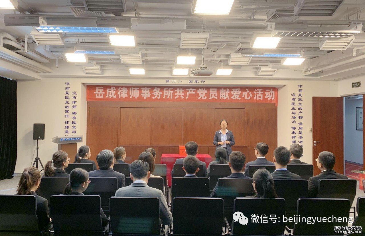 2019年7月1日,正值中国共产党成立98周年,北京岳成律师事务所在北京总所第一会议室举行共产党员献爱心活动。活动中,岳成所党员、入党积极分子、群众及其他党派人员踊跃参加活动,纷纷捐款,为党员献爱心活动贡献自己的力量。