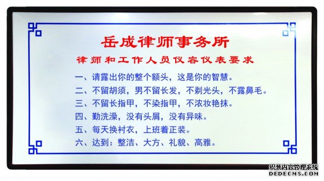 除了对律师的专业服务水平进行严格要求外,日常工作中岳成对所内律师的仪容仪表也进行严格管理。在岳成的严格要求下,岳成所于2010年制定了《律师和工作人员仪容仪表要求》并在实际工作中予以执行。