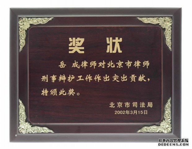 由于岳成在此案中的出色表现,北京市司法局授予他刑事辩护突出贡献奖。在刑事诉讼中,一位律师能够做到当事人满意、家属满意、公诉人满意、法官满意、政府满意,这是非常不容易的。
